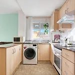 Geniet van een ingerichte keuken in dit appartement met een magnetron, een koelkast en keukengerei voor uw gemak. Door deel te nemen aan activiteiten zoals fietsen kunnen gasten hun verblijf nog spannender maken.